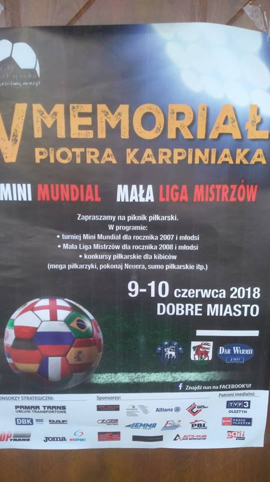 WyróżnioneV MEMORIAŁ IM. PIOTRA KARPINIAKA - CZYLI WIELKIE ŚWIĘTO PIŁKARSKIE W DOBRYM MIEŚCIE JUŻ W NAJBLIŻSZY WEEKEND⚽ Drugi rok z rzędu nasz klub DKS Dobre Miasto jest współorganizatorem V Memoriału im. Piotra Karpiniaka. Dwudniowy Memoriał zostanie rozegrany na Stadionie Miejskim w Dobrym Mieście! W trakcie całego turnieju wezmą udział 32 zespoły, które łącznie będą liczyć […]
