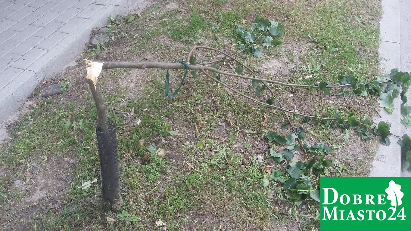 Kolejny akt wandalizmu w Dobrym Mieście. Znowu połamali drzewka przy ul. Zwycięstwa. Ktoś zdecydowanie nie lubi drzew w Dobrym Mieście. Dopiero co Urząd Miasta posadził na nowo drzewka w miejsce połamanych poprzednim razem, a już wandale zdążyli połamać prawie wszystkie drzewka wzdłuż ulicy Zwycięstwa.