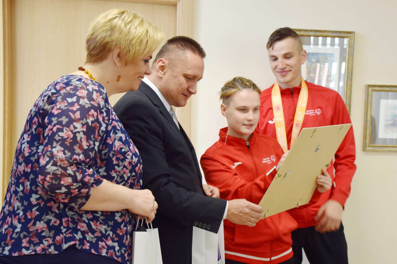 nie spełnił warunku ukończenia 14 roku życia. Każdy zawodnik marzy o medalu, a olimpijski jest najważniejszym, jaki można zdobyć. To duże wyróżnienie dla zawodników, ale też dla ośrodka i powiatu – podsumowuje starosta Andrzej Abako. Olimpijczycy podarowali mu tablicę ze zdjęciami z igrzysk z Abu Dhabi, na której złożyli autografy.