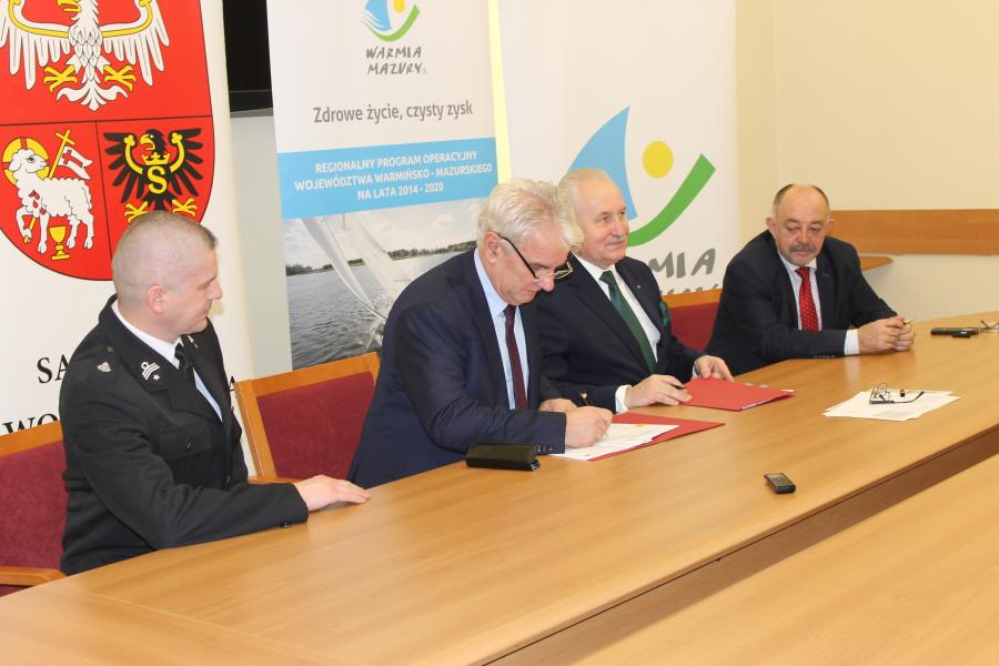 Dnia 29 grudnia br. Marszałek Województwa Warmińsko-Mazurskiego Gustaw Marek Brzezin, Stanisław Trzaskowski Burmistrz Dobrego Miasta i Ewa Wątróch Skarbnik Gminy Dobre Miasto podpisali umowę o dofinansowanie projektu pn. „Zakup Specjalistycznego Samochodu Ratowniczo – Gaśniczego na potrzeby OSP Dobre Miasto”.