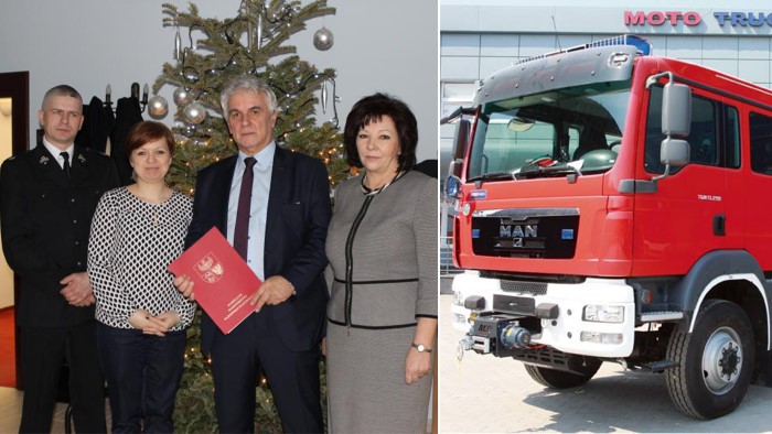 Dnia 29 grudnia br. Marszałek Województwa Warmińsko-Mazurskiego Gustaw Marek Brzezin, Stanisław Trzaskowski Burmistrz Dobrego Miasta i Ewa Wątróch Skarbnik Gminy Dobre Miasto podpisali umowę o dofinansowanie projektu pn. „Zakup Specjalistycznego Samochodu Ratowniczo – Gaśniczego na potrzeby OSP Dobre Miasto”.