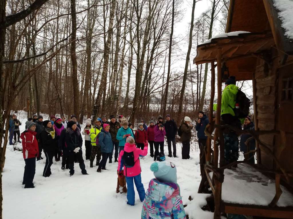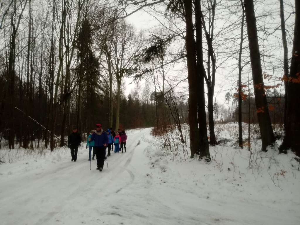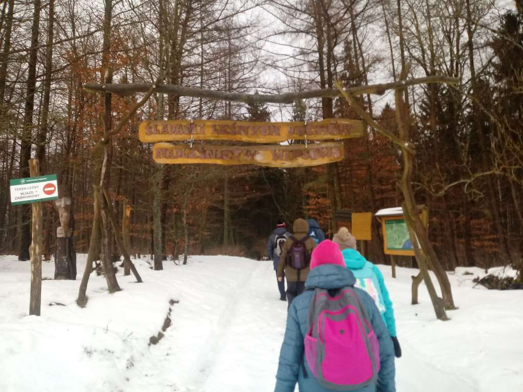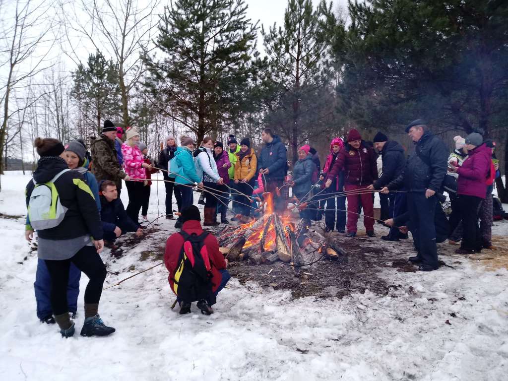 Tu piechurzy przeszli leśną ścieżkę dydaktyczną „Śladami leśnych duchów”, podziwiając mijane po drodze warmińskie straszydła. Cała droga obfitowała w malownicze, zimowe widoki. Ognisko rozpalone pod koniec trasy i wspólny śpiew było zwieńczeniem karnawałowego rajdu. Miłym akcentem wycieczki było także wręczenie młodej uczestniczce Łucji Jaśkiewicz odznaki PTTK – Siedmiomilowych Butów w stopniu srebrnym za udział w rajdach pieszych w 2018 roku.