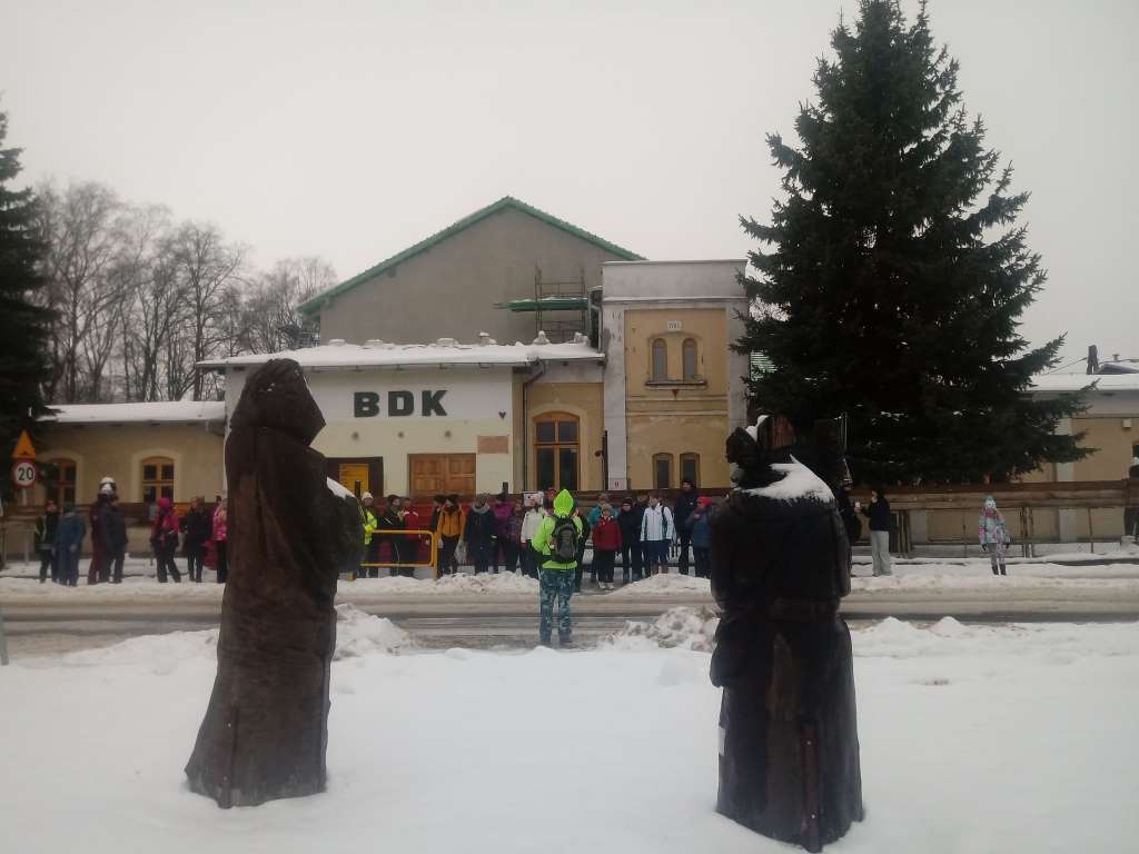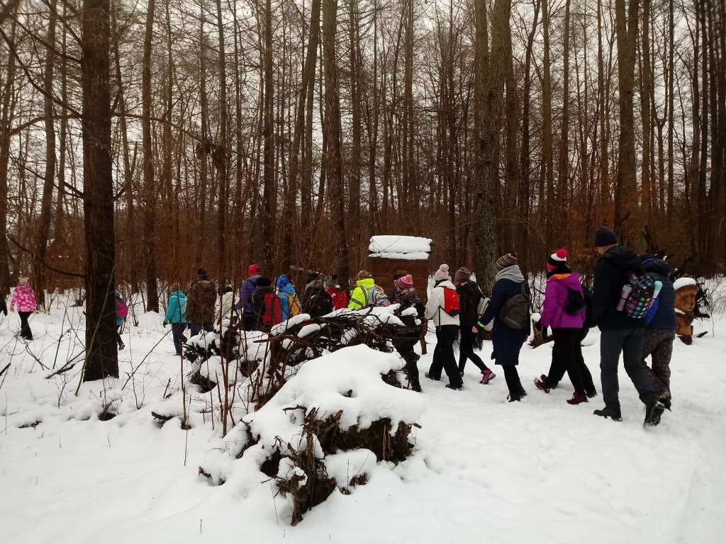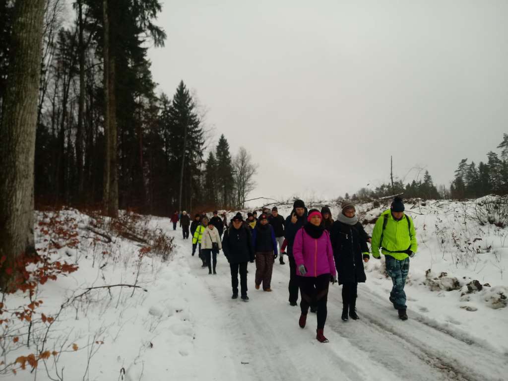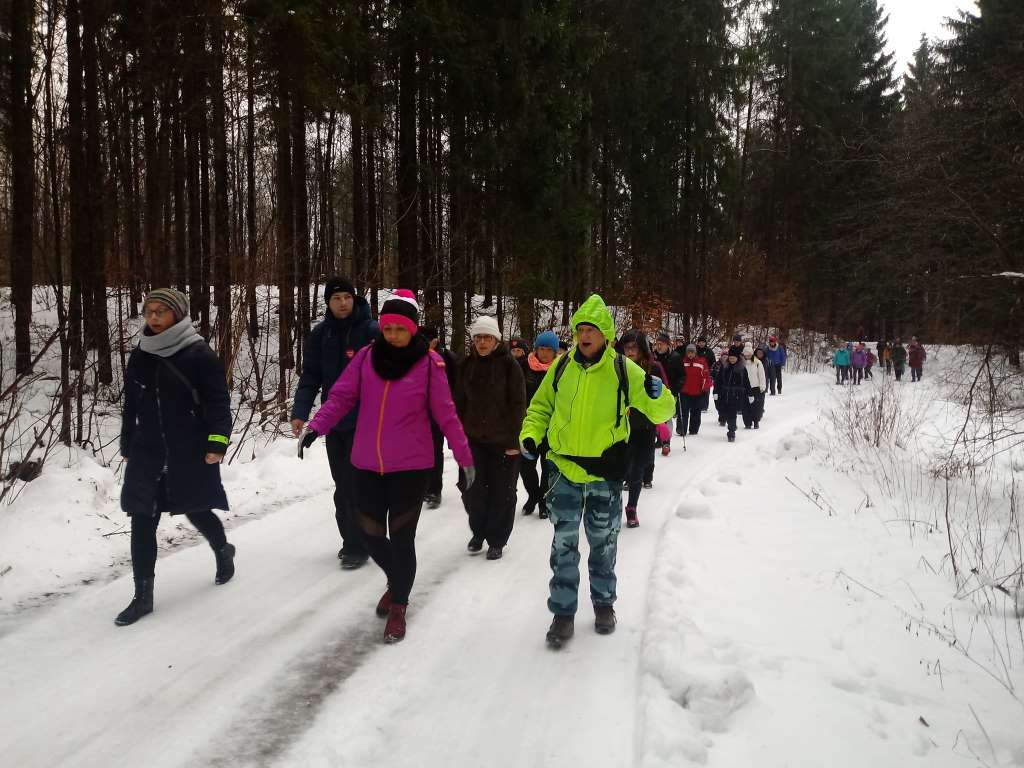 Tu piechurzy przeszli leśną ścieżkę dydaktyczną „Śladami leśnych duchów”, podziwiając mijane po drodze warmińskie straszydła. Cała droga obfitowała w malownicze, zimowe widoki. Ognisko rozpalone pod koniec trasy i wspólny śpiew było zwieńczeniem karnawałowego rajdu. Miłym akcentem wycieczki było także wręczenie młodej uczestniczce Łucji Jaśkiewicz odznaki PTTK – Siedmiomilowych Butów w stopniu srebrnym za udział w rajdach pieszych w 2018 roku.