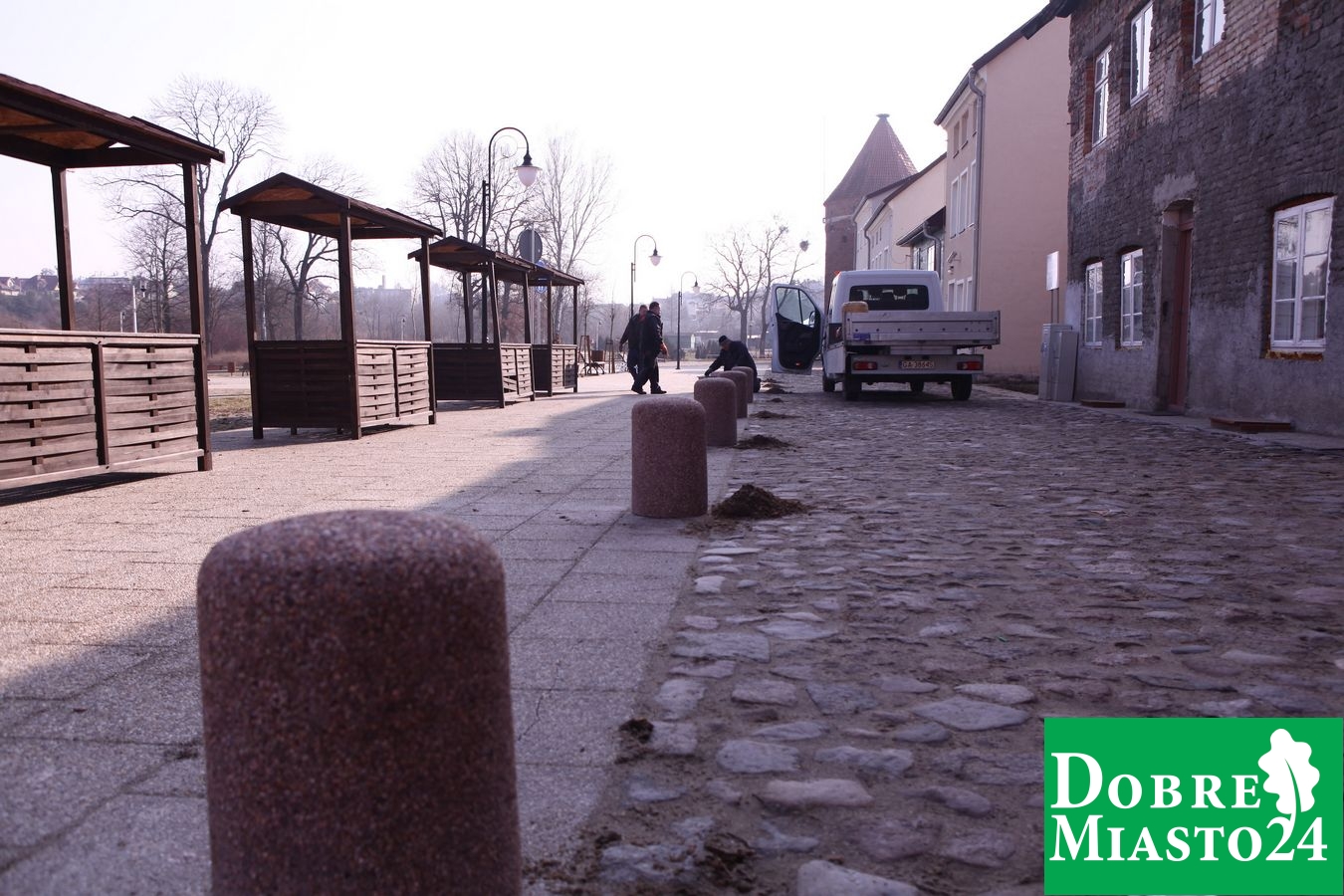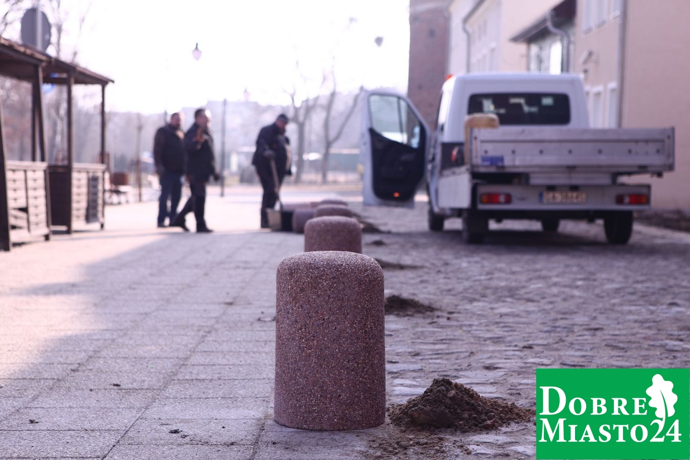 Nowe słupki wzdłuż kamieniczek powinny skutecznie utrudniać wjeżdżanie na chodnik.