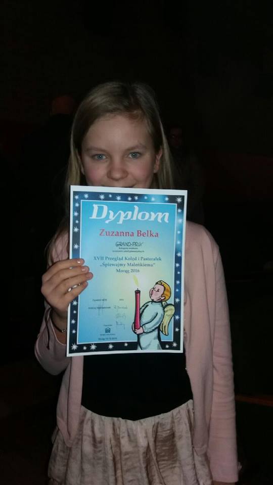 Nagroda Grand Prix XVII Przeglądu Kolęd i Pastorałek: Zuzanna Belka z Centrum Kulturalno-Bibliotecznego w Dobrym Mieście, tytuł utworu: „Uciekali”, opiekun: Sylwia Pacholec-Rudol