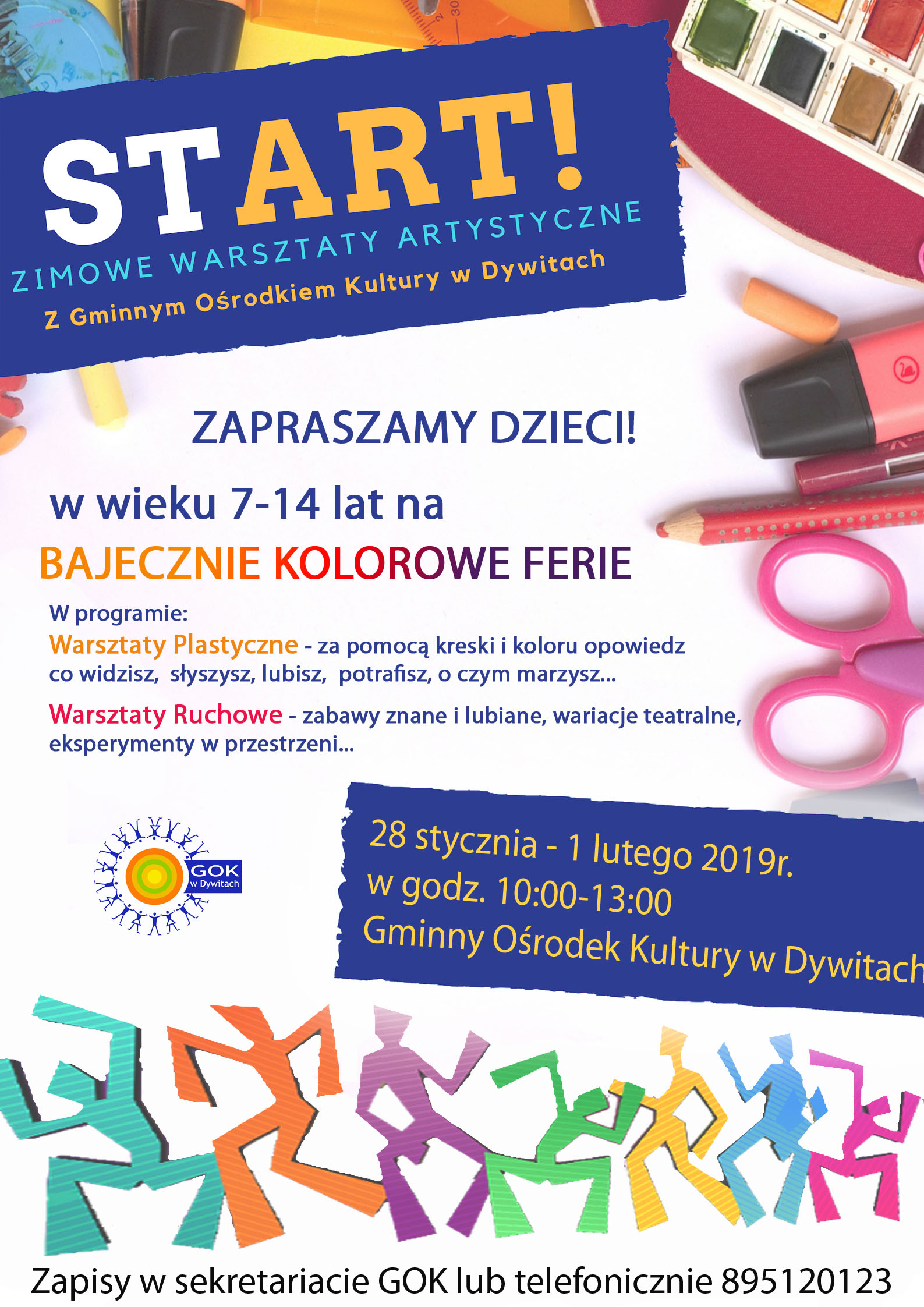 Oferta zajęć dla dzieci w miejscowości Dywity od 28 stycznia do 01 lutego 2019r. w godz. 10:00-13:00. Gminny Ośrodek Kultury.