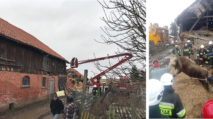 Z nieustalonych przyczyn zawaleniu uległa przybudowana do budynku mieszkalnego cześć gospodarcza. Wewnątrz znajdowały się zwierzęta hodowlane, nie stwierdzono osób poszkodowanych. Dzięki podjętym działaniom i wsparciu mieszkańców udało się wydobyć z gruzowiska trzy żywe byki. W działaniach ratowniczych brały udział zastępy straży pożarnej z gminy Dobre Miasto [ OSP Praslity GBARt, OSP Dobre Miasto GBARt, OSP Piotraszewo GLBA ], OSP Jeziorany [SH18] oraz KM PSP Olsztyn [ JRG 1 SCRt i JRG 2 GBARt ]. Przyczyny zawalenia budynku ustali Policja oraz Nadzór Budowlany.