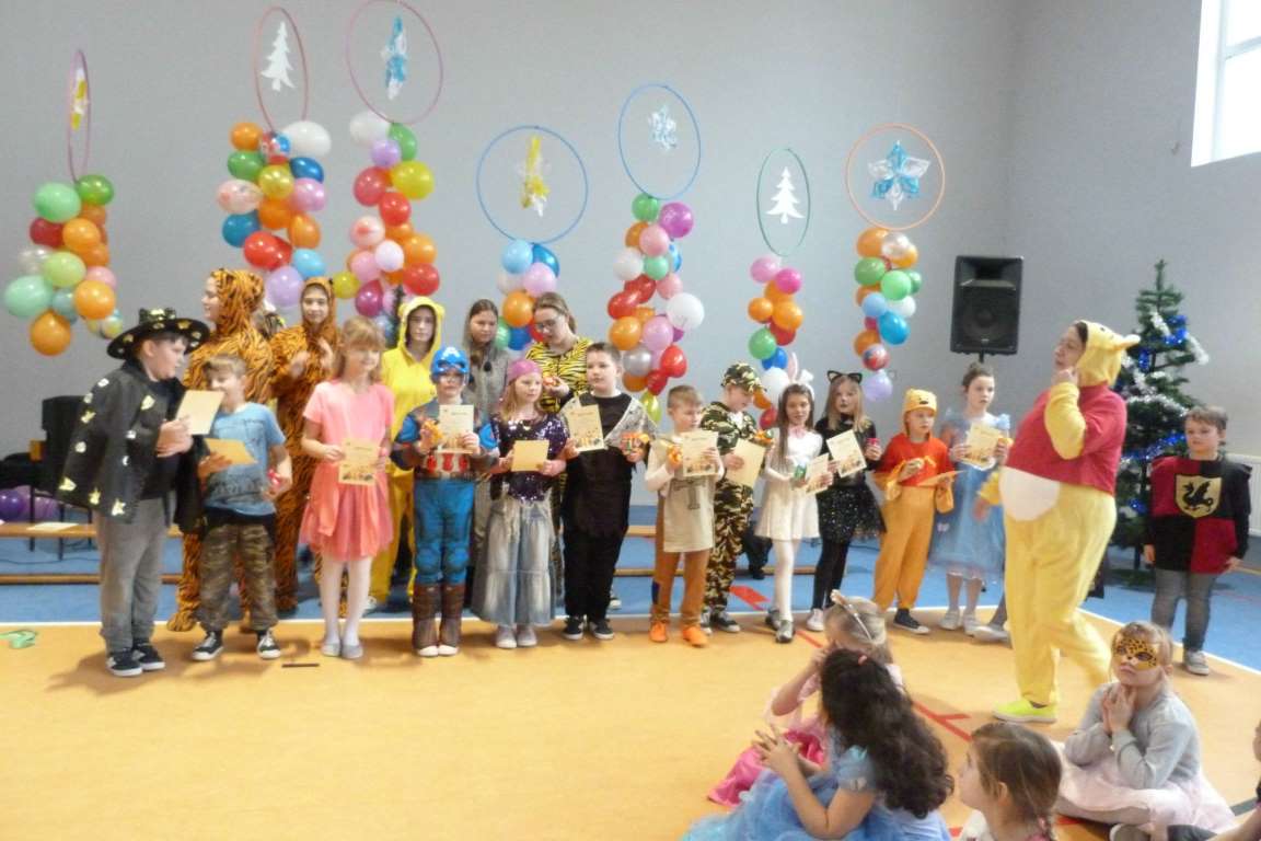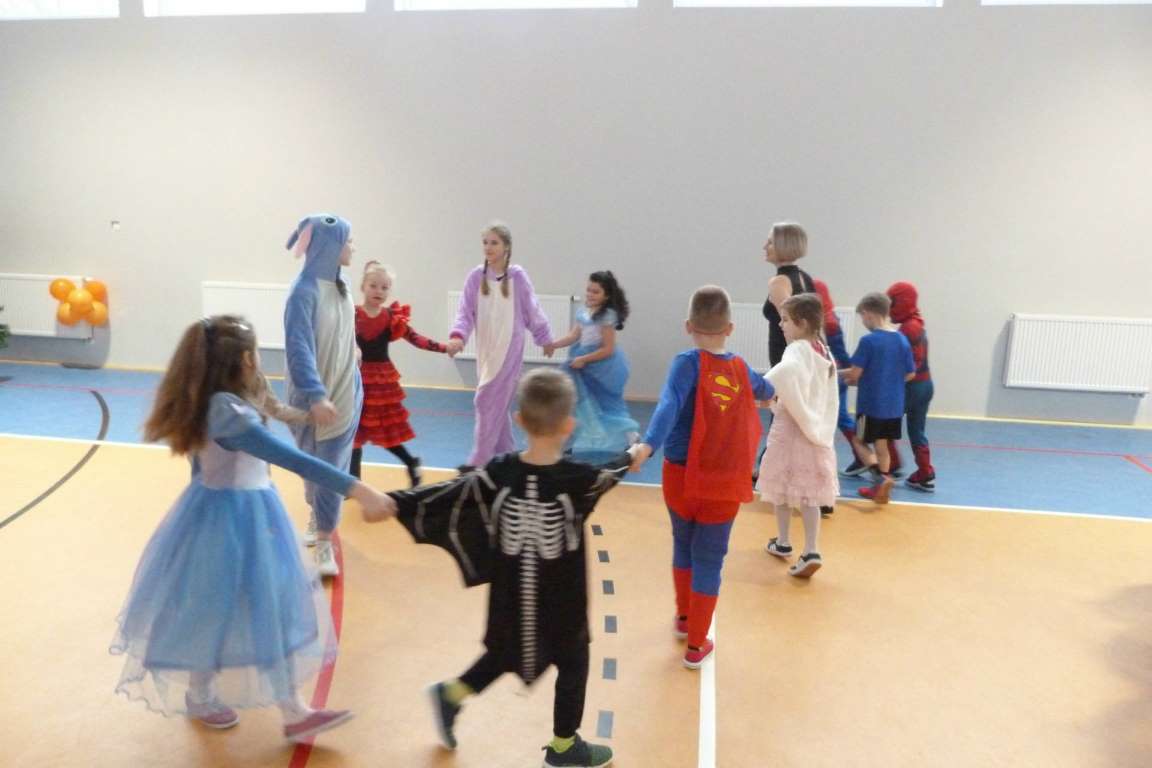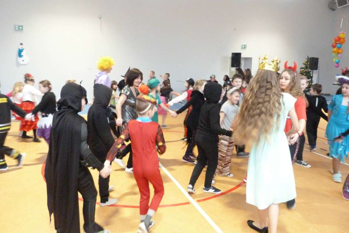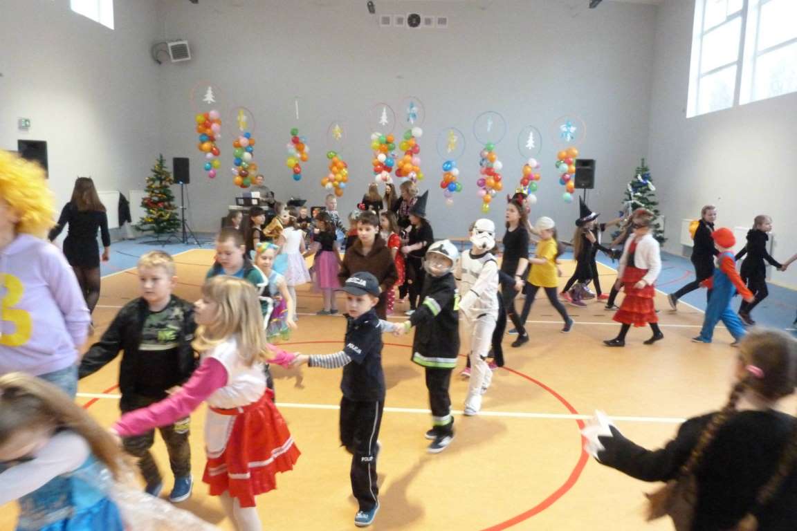 Cóż tam były za stroje, przebrania – królewny, postacie z filmów, policjanci, zwierzęta! Pan Edward Kluczenko wraz z uczniami klasy VIII b Hubertem Dutkowskim i Dominikiem Wichrowem, zabrali nas w muzyczną podroż po Polsce i po świecie. Na rozpoczęcie balu wszyscy zatańczyliśmy poloneza. Następnie bawiliśmy się wspaniale w karnawałowych rytmach .