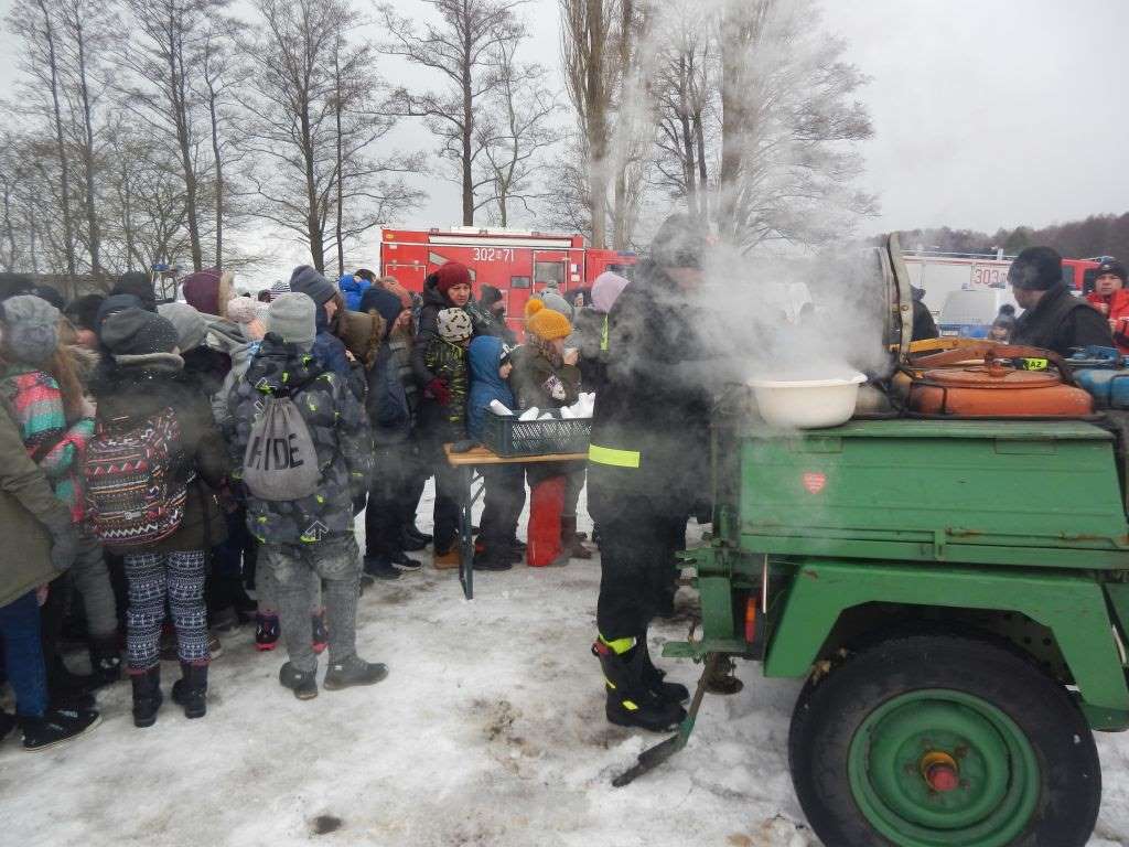 15 stycznia uczniowie klas IV – VI wzięli także udział w akcji Bezpieczny lód nad Jeziorem Dadaj. Uczestnicy festynu mieli możliwość zobaczenia na żywo, co dzieje się z osobą, pod którą załamie się lód, jak trudno jest o własnych siłach wydostać się na brzeg. Jest to doskonały moment by pokazać im, jak powinni się zachować, jeżeli w takiej sytuacji się znajdą, a czego kategorycznie unikać. Pokazy przygotowane przez strażaków mają być przestrogą dla najmłodszych i przesłaniem, że nie ma bezpiecznego lodu, jest on zdradliwy i zdecydowanie nie jest miejscem do zabawy. Poza oglądaniem specjalistycznych pokazów ratowniczych, dzieci mogły zobaczyć jak wygląda tresura i posłuszeństwo psa służbowego. Policyjny przewodnik omówił pozycję „żółwika” w momencie gdy zaatakuje nas agresywny pies. Przekazał też kilka praktycznych rad, jak za pomocą plecaka szkolnego odciągnąć uwagę atakującego nas zwierzęcia. Na dzieci czekało także ognisko.