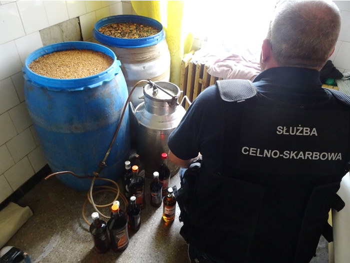 Z informacji jakie uzyskali funkcjonariusze Warmińsko-Mazurskiego Urzędu Celno-Skarbowego wynikało, że w jednym z domków w Dobrym Mieście jest „pędzony” i sprzedawany nielegalny alkohol. Wczoraj, 20 lipca, mundurowi odwiedzili to miejsce. Podejrzenia się potwierdziły. W czasie kontroli, na I piętrze domku jednorodzinnego, znaleziono 3 beczki. Każda zawierała po około 150 litrów zacieru. W wyniku przeszukania całej posesji ujawniono także, ukryte na strychu 10 butelek o różnej pojemności z alkoholem o mocy około 55%, oraz aparaturę do produkcji bimbru. Wobec właściciela domu wszczęto sprawę karną a towar zabezpieczono.