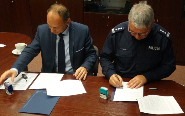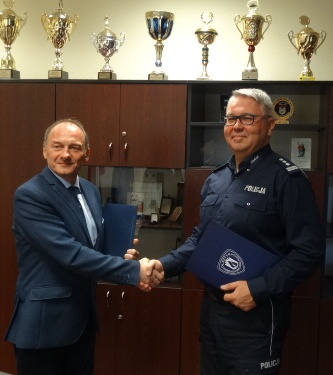 W miniony piątek (15.09.2017r.) Komendant Miejski Policji w Olsztynie, insp. Piotr Zabuski oraz Dyrektor Zespołu Szkół w Dobrym Mieście, p. Andrzej Wonia, podpisali porozumienie dotyczące współpracy przy realizacji w szkole licealnej innowacji pedagogicznej pn. „Klasa Mundurowa. Praca Policji. Praca w Wojsku i Straży Pożarnej”. W programie innowacji pedagogicznej poza przedmiotami z ramowego planu nauczania liceum ogólnokształcącego, przewidziane są także zajęcia z zakresu prawoznawstwa, wiedzy o państwie i Policji, zarządzania kryzysowego, udzielania pierwszej pomocy. W spotkaniu, podczas którego podpisane zostało porozumienie, wzięli udział Dyrektor Zespołu Szkół w Dobrym Mieście wraz z opiekunem innowacji pedagogicznej i równocześnie nauczycielem edukacji dla bezpieczeństwa, p. Henrykiem Hornatkiewiczem. Z ramienia Policji wspólnie z Komendantem w spotkaniu uczestniczyła p. Lidia Cynt z Wydziału Prewencji KMP w Olsztynie, która na terenie powiatu koordynuje współpracę z klasami mundurowymi.