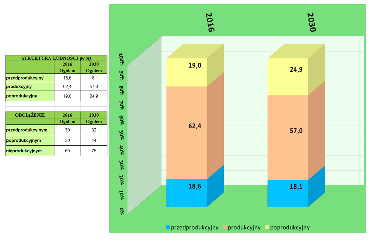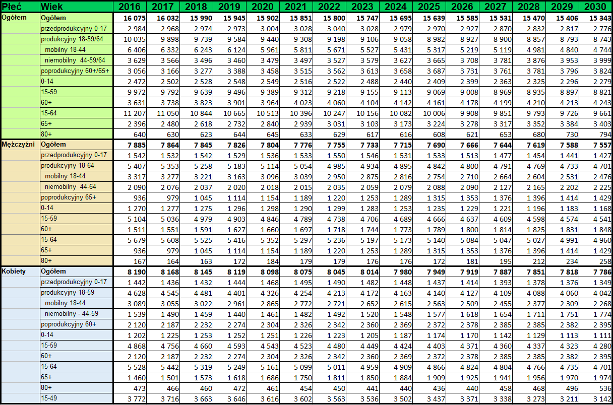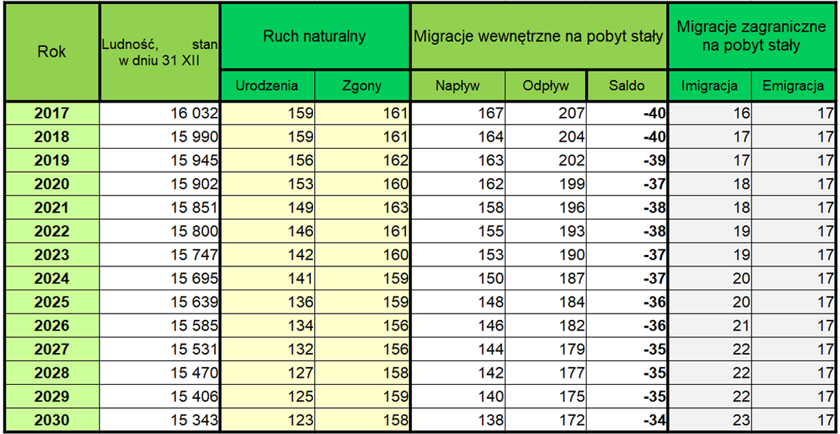 Prezentowana prognoza ludności gmin do 2030 r. jako punkt wyjścia przyjmuje stan ludności w dniu 31.12.2016 r. w obowiązującym wówczas podziale administracyjnym.