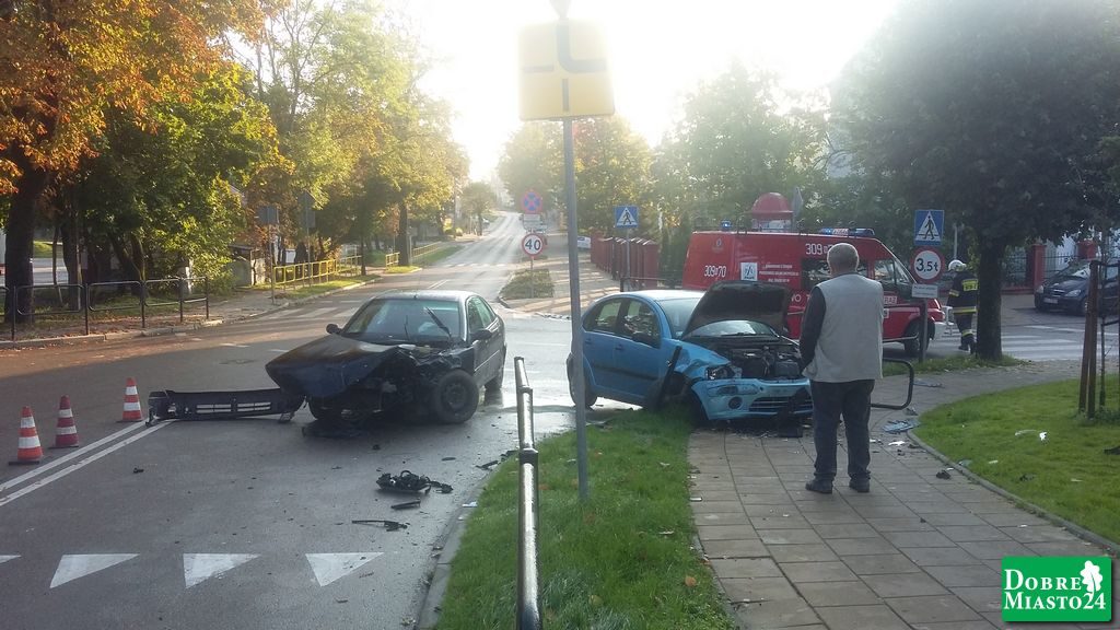 W dniu dzisiejszym tj. 2017-09-19 przed godziną siódma rano doszło do zderzenia dwóch samochodów osobowych na skrzyżowaniu ulic Krótkiej i Zwycięstwa w Dobrym Mieście.