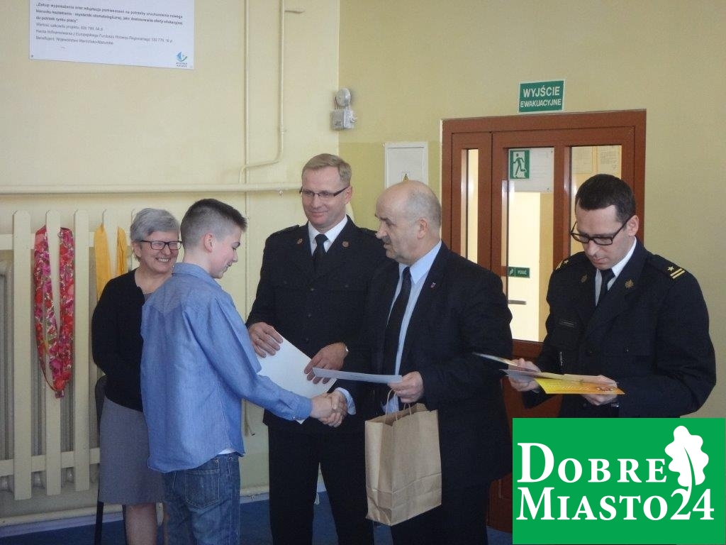 Nagrody wręczał im Wicestarosta Olsztyński Jan Żemajtys, Komendant Miejski Państwowej Straży Pożarnej w Olsztynie bryg. Andrzej Górzyński. W zakończeniu uczestniczyła także zastępca dyrektora szkoły policealnej Marzenna Mrozowska.