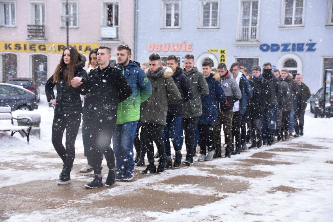 Przeddzień balu studniówkowego to już tradycyjny czas próby generalnej poloneza na Placu Wolności.