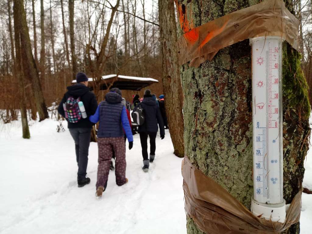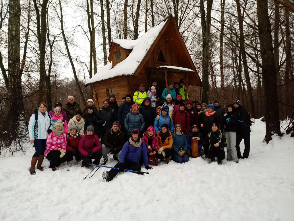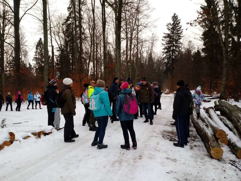 Tu piechurzy przeszli leśną ścieżkę dydaktyczną „Śladami leśnych duchów”, podziwiając mijane po drodze warmińskie straszydła. Cała droga obfitowała w malownicze, zimowe widoki. Ognisko rozpalone pod koniec trasy i wspólny śpiew było zwieńczeniem karnawałowego rajdu. Miłym akcentem wycieczki było także wręczenie młodej uczestniczce Łucji Jaśkiewicz odznaki PTTK – Siedmiomilowych Butów w stopniu srebrnym za udział w rajdach pieszych w 2018 roku.