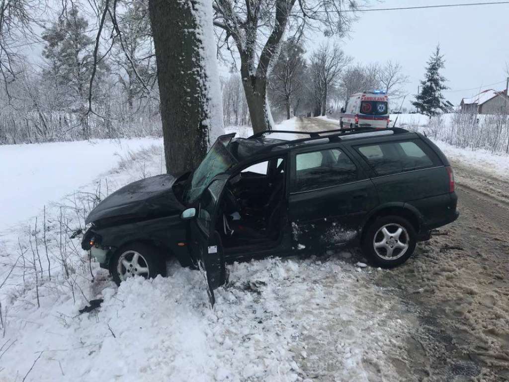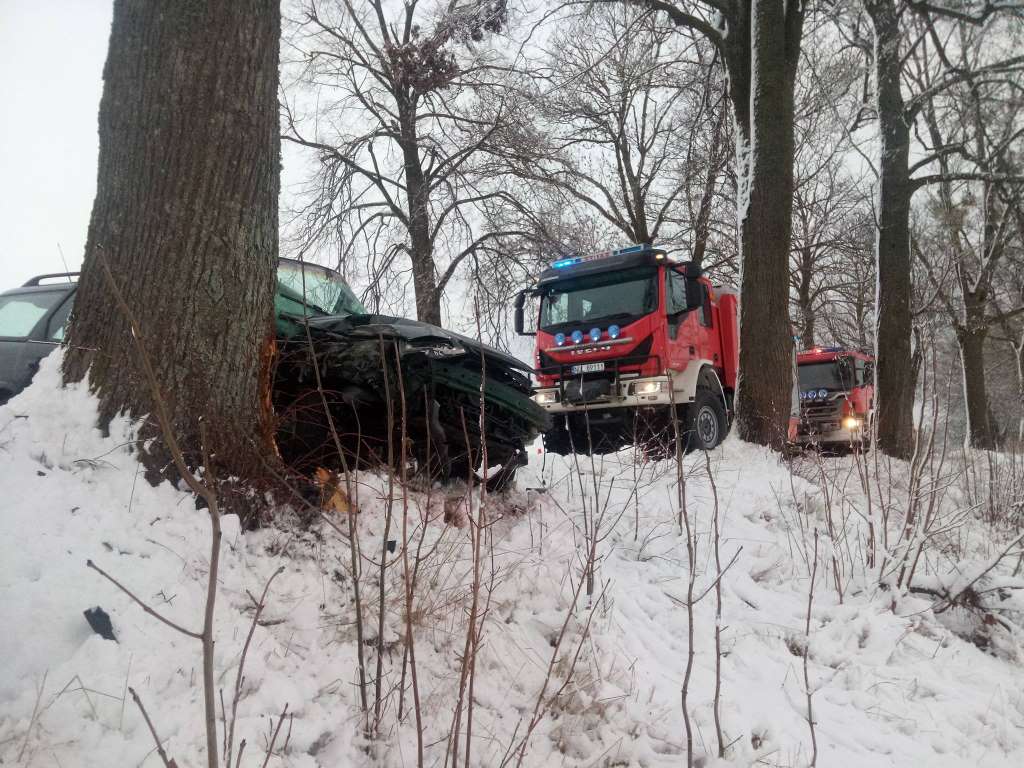 W dniu 04.02.2019r ok 14:10 na odcinku drogi wojewódzkiej nr 530, pomiędzy Dobrym Miastem i miejscowością Głotowo, z nieustalonych przyczyn, samochód osobowy uderzył w przydrożne w drzewo.