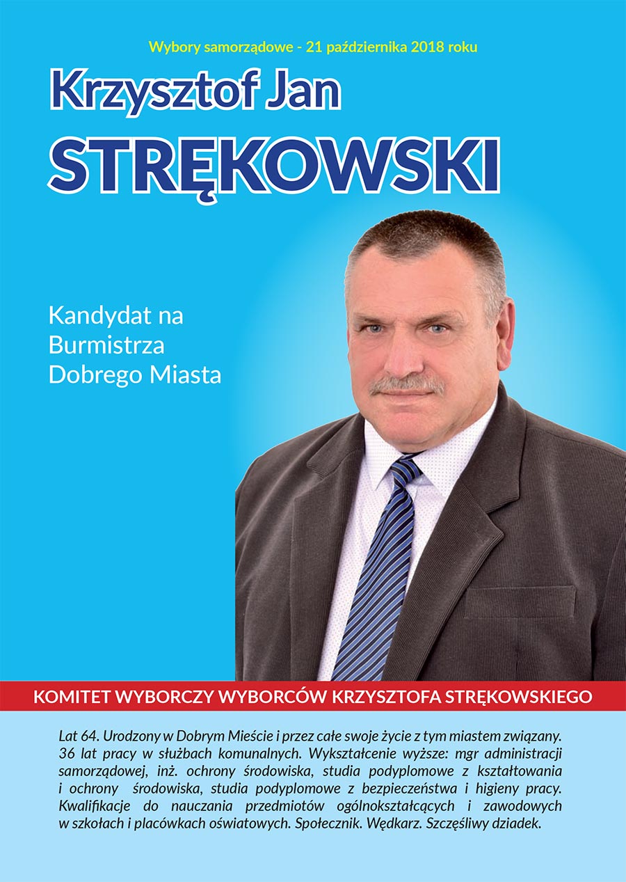- równe traktowanie wszystkich podmiotów edukacyjnych w zakresie dofinansowaniaNaszym kandydatem na Burmistrza Dobrego Miasta w wyborach samorządowych jest