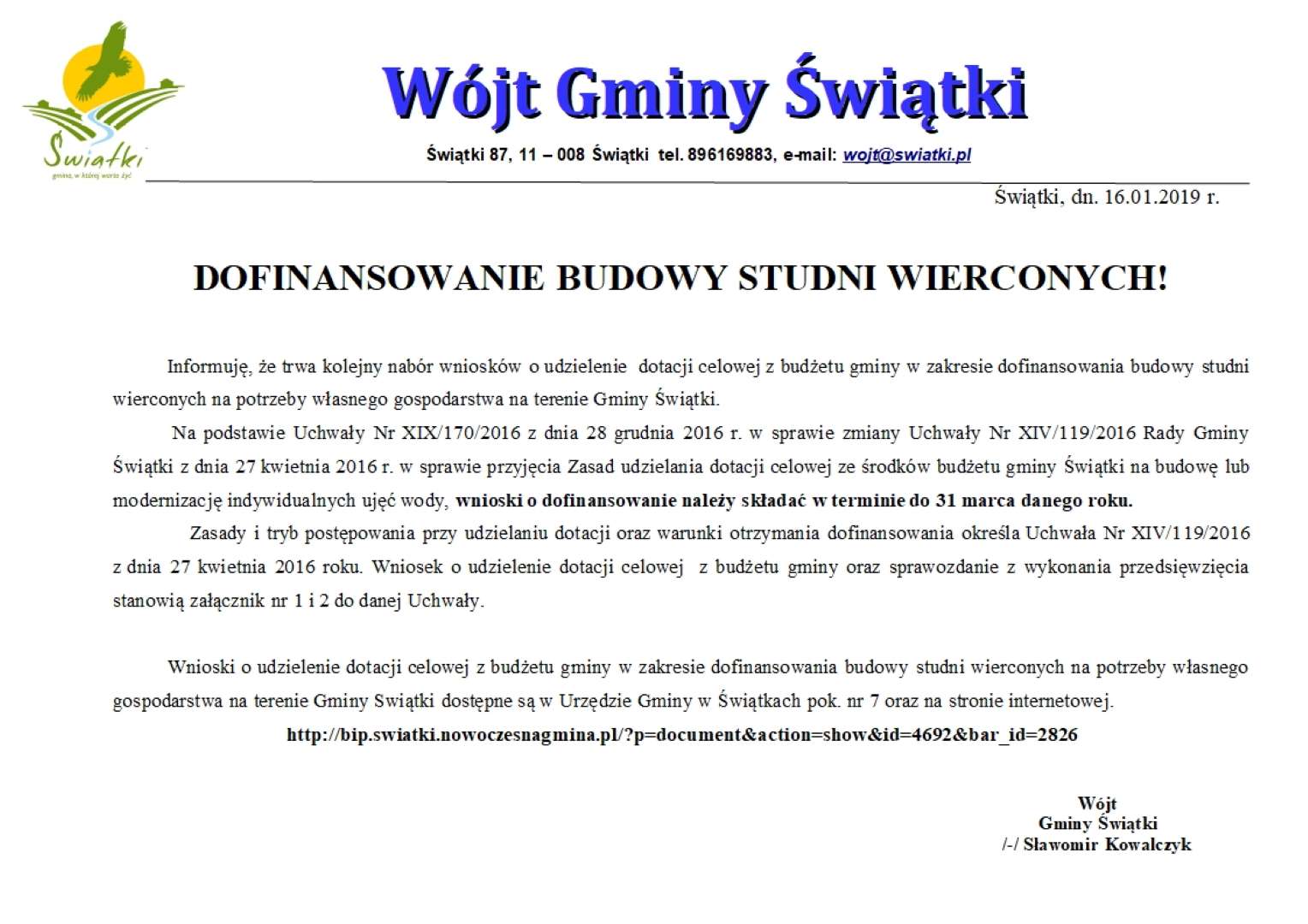 Ruszył nabór na dofinansowanie budowy studni wierconych w Gminie Świątki