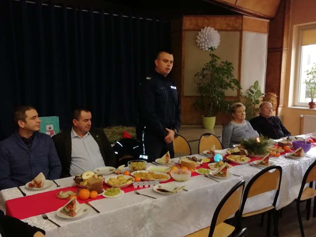 Wśród zaproszonych gości byli: Wójt Gminy Świątki Sławomir Kowalczyk, dzielnicowy Kamil Kania, proboszcz Parafii w Świątkach ks. Eugeniusz Bartusik, sołtys wsi Świątki Marek Wyrębiak, Kierownik Biblioteki Halina Kirjew i pracownicy biblioteki, Dyrektor Przedszkola Dorota Przekop oraz członkowie Rady Parafialnej. Tradycyjnie wszyscy złożyli sobie życzenia i podzielili się opłatkiem. Ciepłe słowa wraz ze świątecznymi życzeniami złożył gościom spotkania Wójt Gminy Świątki Sławomir Kowalczyk.
