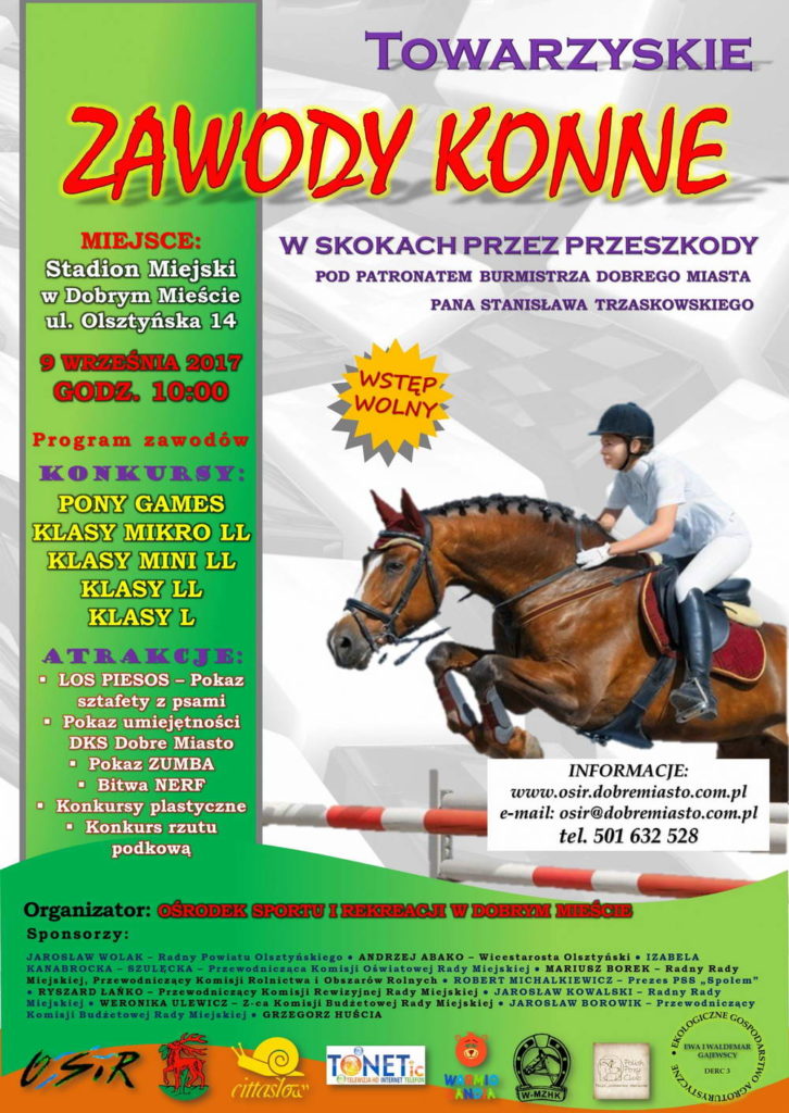 Już 9 września na Stadionie Miejskim w Dobrym Mieście odbędą się Towarzyskie Zawody Konne, w skokach przez przeszkody pod patronatem Burmistrza Dobrego Miasta.