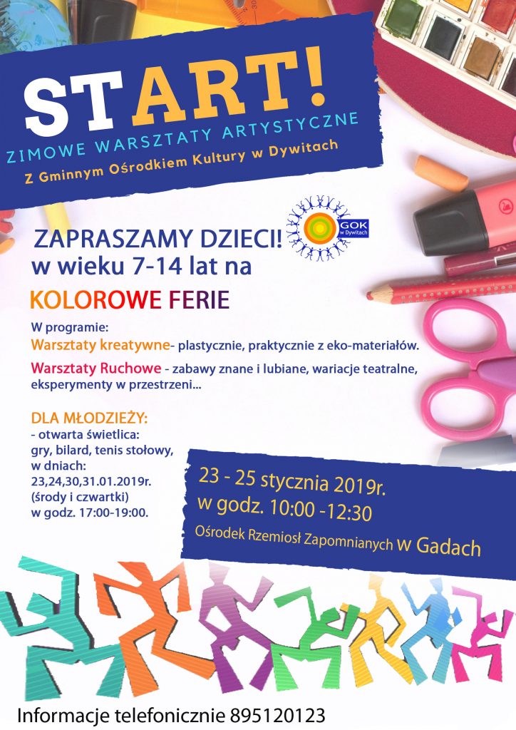 Oferta zajęć dla dzieci w miejscowości Gady w dniach 23-25 stycznia 2019r. w godz. 10:00-12:30. Ośrodek Rzemiosł Zapomnianych.