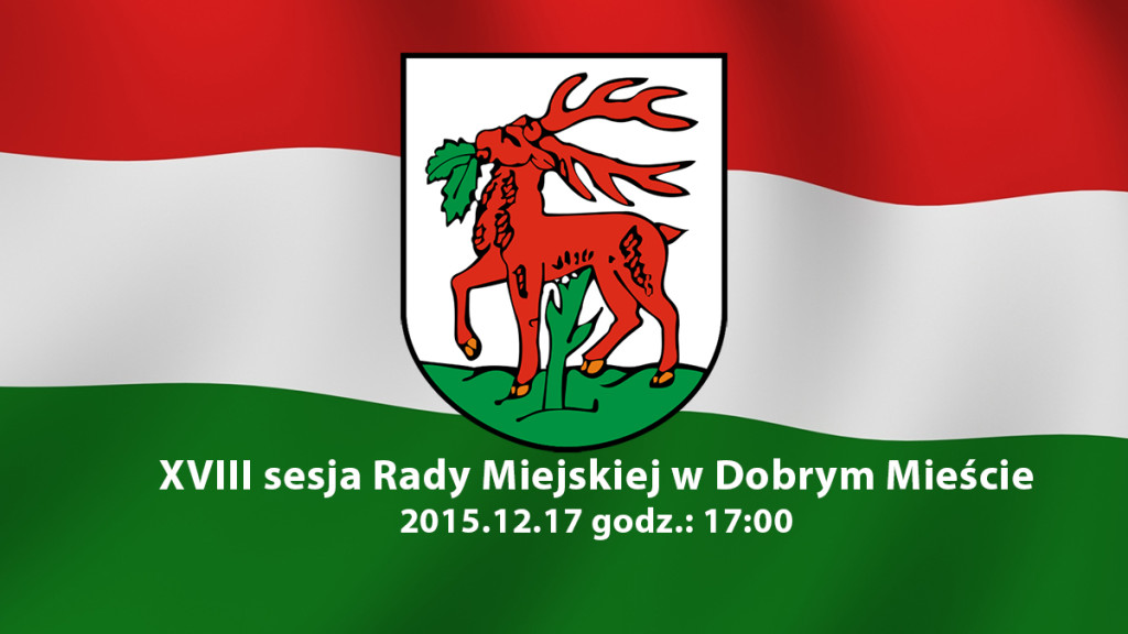 Informuję, że XVIII-a sesja Rady Miejskiej w Dobrym Mieście odbędzie się 29 grudnia 2015 r., tj. wtorek o godz. 9.00 w Centrum Kulturalno-Bibliotecznym (sala spotkań) w Dobrym Mieście, przy ul. Górnej 1A.